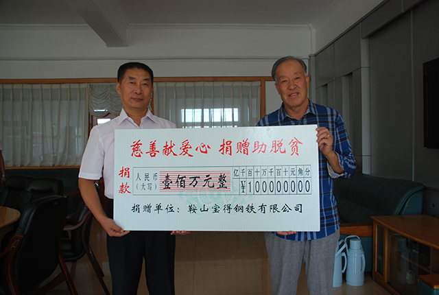 9月1日,《中華人民共和國(guó)慈善法》正式頒布實(shí)施的當(dāng)天下午,鞍山寶得鋼鐵公司的一位代表風(fēng)塵仆仆來(lái)到市慈善總會(huì),捐出專項(xiàng)善款100萬(wàn)元,并轉(zhuǎn)達(dá)了寶得公司董事長(zhǎng)張永全的話:“我要兌現(xiàn)承諾,只要企業(yè)經(jīng)濟(jì)效益好了,只要我們還有這個(gè)能力,就要繼續(xù)獻(xiàn)愛(ài)心,就要幫助那些有困難的人。”
