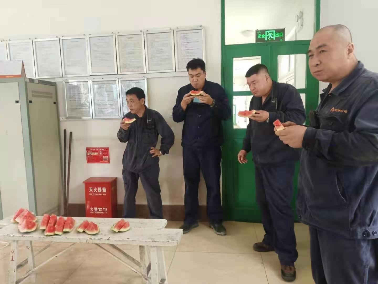 公司組織各分廠、車間和部門開展預防高溫中暑知識宣傳活動,使廣大職工了解和掌握防暑降溫知識和中暑急救知識,提高全員安全防范意識,并為各高溫崗位的操作室、休息室安裝了空調。7月初,公司工會就從冷飲生產廠家訂購了大批鹽汽水,保證每天向生產崗位發(fā)放,并適時采購西瓜分發(fā)到各崗位,給職工消暑解渴。與此同時,公司為使職工能喝上冰涼爽口的鹽汽水,專門給全公司各車間都配備了大容量的冰柜;食堂提高伙食標準,主、副食精工細做,讓職工吃上可口的飯菜;食堂職工每天還精心熬制綠豆水并送到生產一線。公司安全生產處為生產一線部門配發(fā)了風油精、藿香正氣口服液等防暑降溫藥品,這些措施的實施既體現了公司對全體職工的人文關懷,更為廣大職工“戰(zhàn)酷暑、保安全”起到了積極的作用。