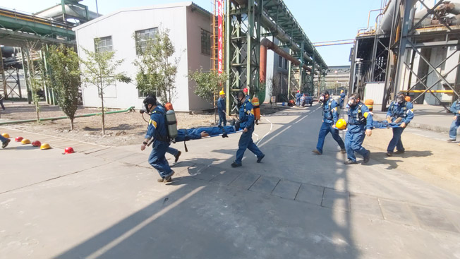 本次演練,煉鐵廠主要領(lǐng)導(dǎo)高度重視、準(zhǔn)備充分、計(jì)劃周密,并且主要領(lǐng)導(dǎo)和50余名不同崗位、不同工種的一線員工親自參加;使用了空氣呼吸機(jī)、蘇生器、擔(dān)架、警戒帶、警示燈、對(duì)講機(jī)、應(yīng)急救援車輛、應(yīng)急救援專用袖標(biāo)、消防救援服、滅火器、消防水帶及撒水車等應(yīng)急物資和裝備;本次實(shí)戰(zhàn)演練展現(xiàn)出指令明確、集結(jié)迅速、裝備整齊、信息傳遞暢通、救援行動(dòng)規(guī)范、醫(yī)療救護(hù)到位、滅火動(dòng)作嫻熟、后勤保障可靠等諸多特點(diǎn)。